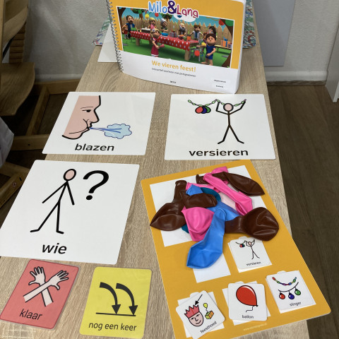 Interactief voorlezen met ondersteunde communicatie lokt initiatieven uit in de communicatie door de inzet van materialen die passen bij het boek én de inzet van verschillende vormen van ondersteunde communicatie.